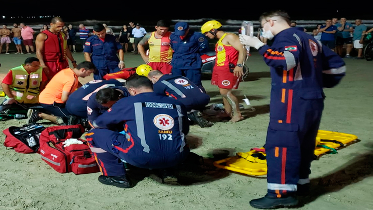 Socorristas utilizaram motos aquáticas para resgatar a vítima e conduzi-la até a faixa de areia, mas ela não resistiu ao grau de afogamento e entrou em óbito.