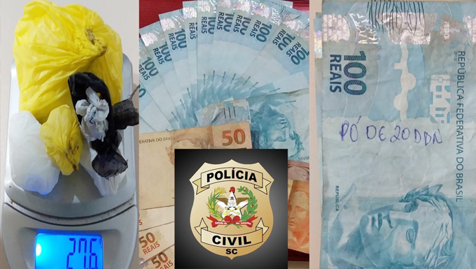 De acordo com informações da Polícia Civil, 27,6 gramas de cocaína e R$ 1,7 mil em espécie foi encontrado na casa do suspeito.