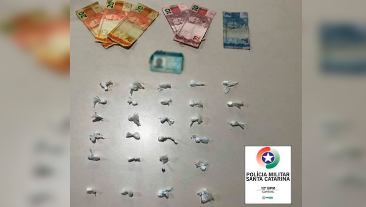 Ao chegar no imóvel a guarnição encontrou 27 porções de cocaína e uma quantia de R$82 em espécie. O masculino de 33 anos, abordado pela PM foi preso.