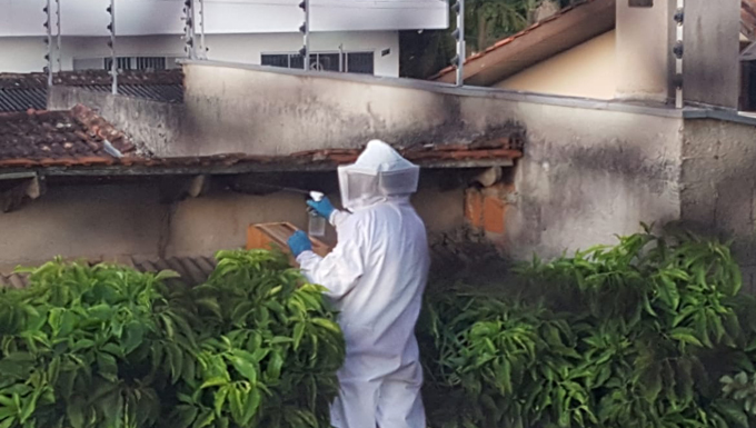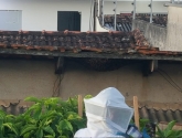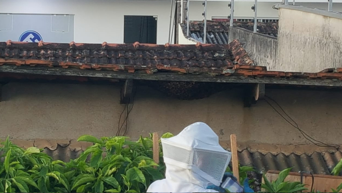 Uma equipe do Corpo de Bombeiros chegou a ser acionada, mas passou o contato de um apicultor para moradora, identificada como Zurilda Lemos.