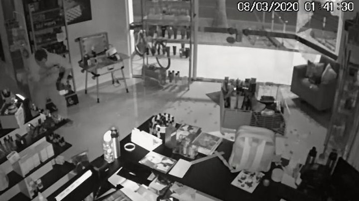 A proprietária informou que a Polícia Militar foi acionada por volta da 1h40min, exato momento em que o alarme disparou. O criminoso teria permanecido por aproximadamente um minuto no local.