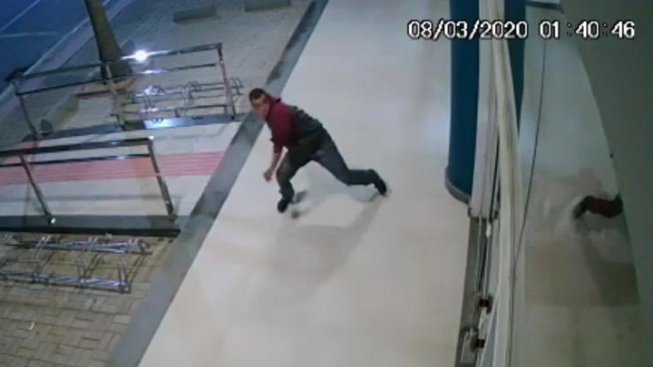Uma academia localizada na rua Florianópolis, no Centro de Tijucas, foi alvo de uma ação criminosa na madrugada deste domingo (08). Imagens das câmeras de videomonitoramento registraram o exato momento em que um ladrão joga uma pedra para quebrar uma das portas de acesso, e em seguida ele furta alguns objetos e foge do local.