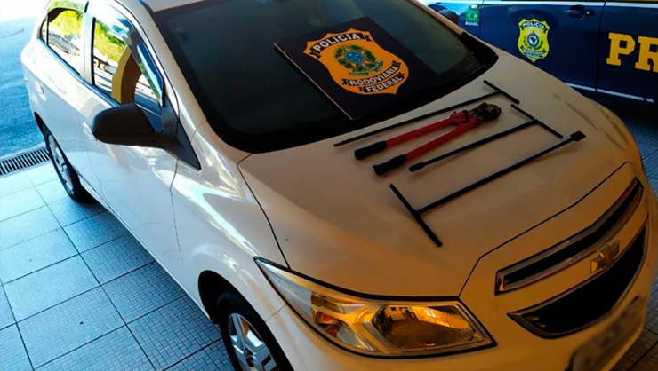 De acordo com informações de policiais, os criminosos foram flagrados na manhã deste domingo (08), com um estepe furtado de uma picape, que estava estacionada em um Outlet, em Porto Belo. Ferramentas utilizadas para cometer o crime também foram encontradas no veículo dos masculinos.