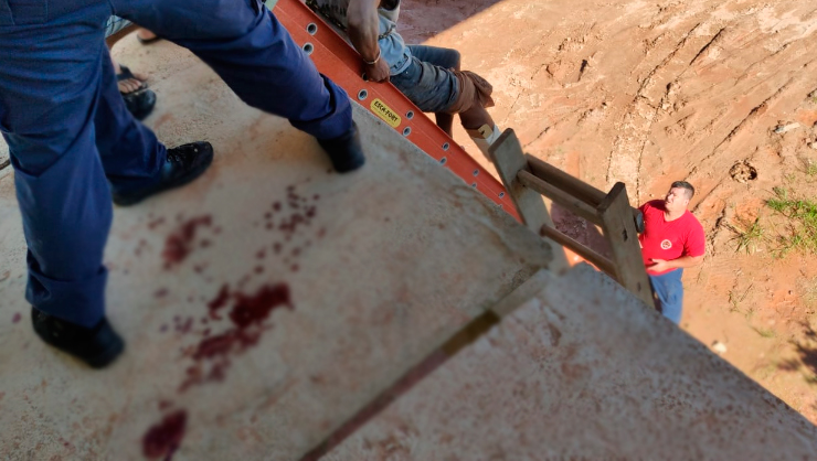 Uma equipe do Corpo de Bombeiros foi acionada para o resgate por volta das 14h55min. Ele foi socorrido e posteriormente encaminhado ao hospital de Canelinha, com um corte profundo no pé.