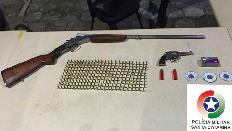 Um homem foi preso na noite desta sexta-feira (20), em Camboriú, por possuir ilegalmente duas armas de fogo. A Polícia Militar foi informada por meio de uma denúncia anônima, que o acusado efetuava disparos na casa onde morava, na Estrada Geral do Caetés.