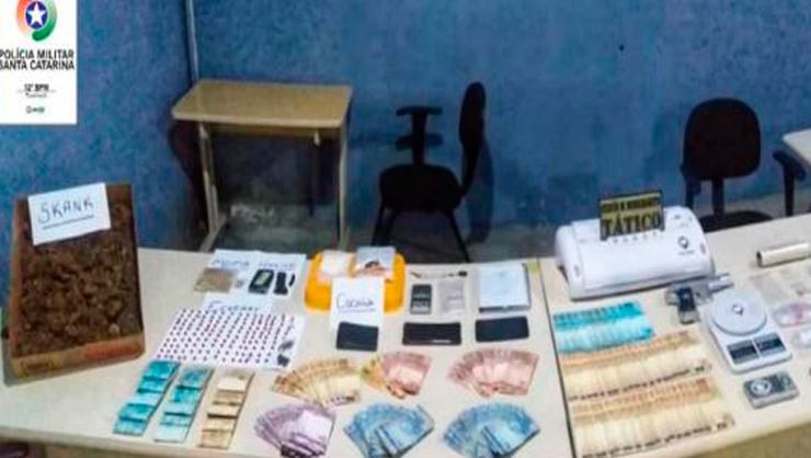 Questionada pelos policiais, a feminina teria repassado informações que levaram a um centro de distribuição localizado na rua 1061. No local, um jovem de 18 anos e um adolescente de 17 foram encontrados em posse de 727 g de Skank, 523 g de cocaína, 146 comprimidos de ecstasy, 51 g de MDMA, 132 g de haxixe, 01 balança de precisão, material para embalar as drogas e uma quantia de R$ 16.357 em espécie.