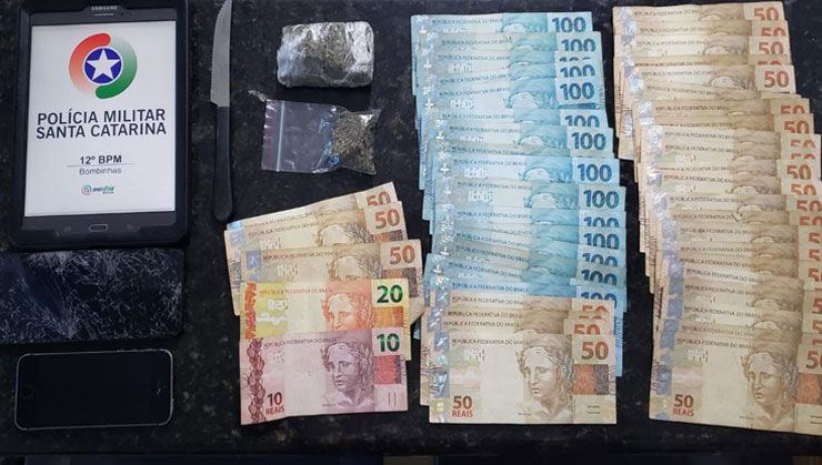 No quarto dos envolvidos, dentro de uma caixa de sapato, foi encontrado uma porção de maconha de 49 gramas e uma faca de cozinha. Já dentro de um tênis, a quantia de R$ 2,9 mil. Os autores e o usuário foram conduzidos à Delegacia de Polícia Civil de Porto Belo para os procedimentos cabíveis.