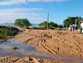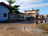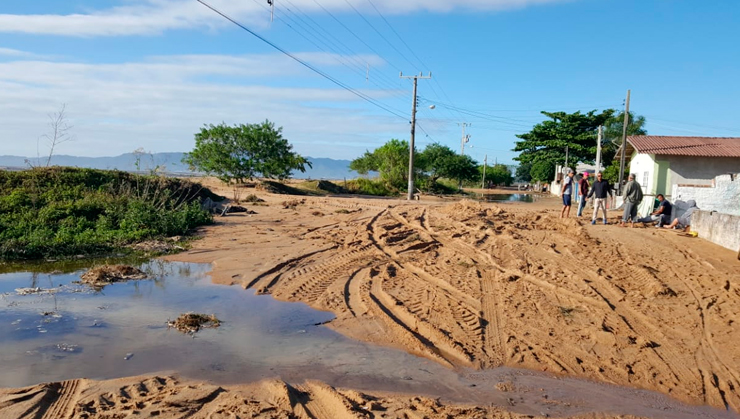 Ao amanhecer o dia, a cena vista pelas ruas próximas da praia era de destruição. Lama, poças enormes de água e muita areia, dão a dimensão do estrago provocado pela força da natureza.
