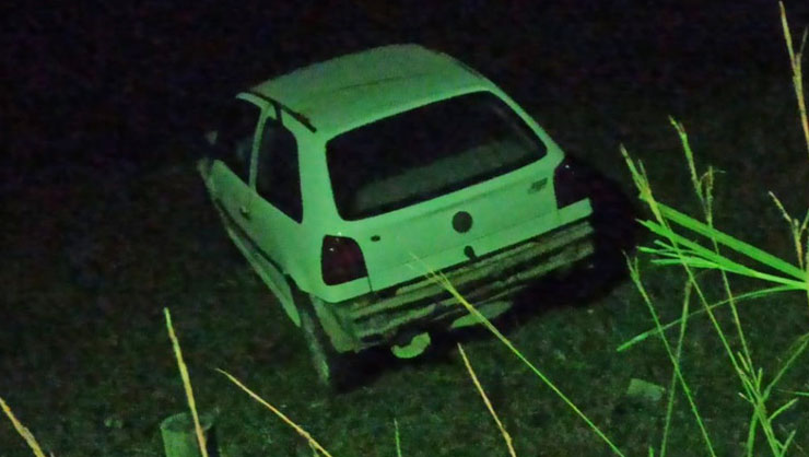 Segundo informações da Polícia Militar da cidade, depois de receber a denúncia, foi montado um cerco na entrada da cidade. Os policiais tentaram abordar o carro, mas durante a fuga o condutor do veículo perdeu controle em uma curva e colidiu contra o muro de uma empresa.