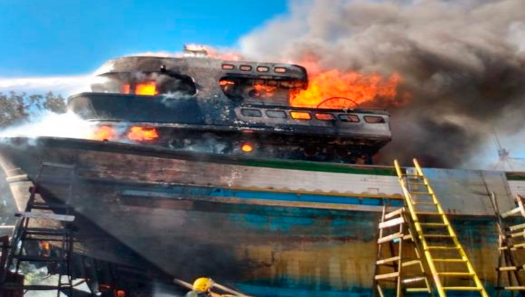 Uma equipe de brigadistas foi acionada para combater um incêndio em um barco de pesca na última sexta-feira (03), em Itajaí. A embarcação avaliada em R$ 5 milhões, estava em um estaleiro localizado no bairro Salseiros.