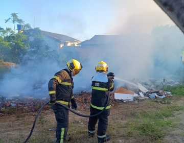 Bombeiros combatem queima de entulho em terreno baldio em Tijucas