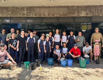 Alunos do Colégio Policial Militar realizam ação voluntária de limpeza de pichações em Blumenau