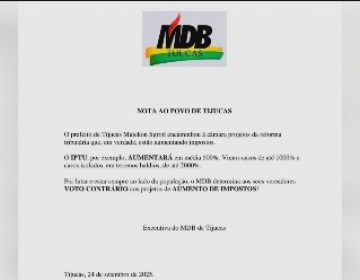 MDB de Tijucas emite nota posicionando-se contra aumento de imposto